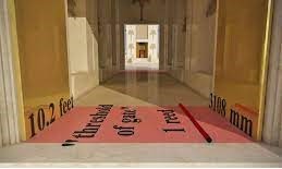 17-19 The man then led me to the outside courtyard and all its rooms. A paved walkway had been built connecting the courtyard gates. Thirty rooms lined the courtyard. The walkway was the same length as the gateways. It flanked them and ran their entire length. This was the walkway for the outside courtyard. He measured the distance from the front of the entrance gateway across to the entrance of the inner court: one hundred fifty feet.