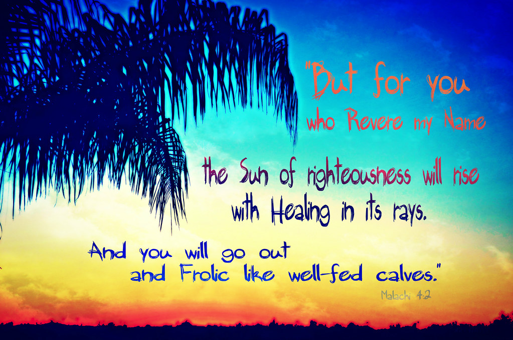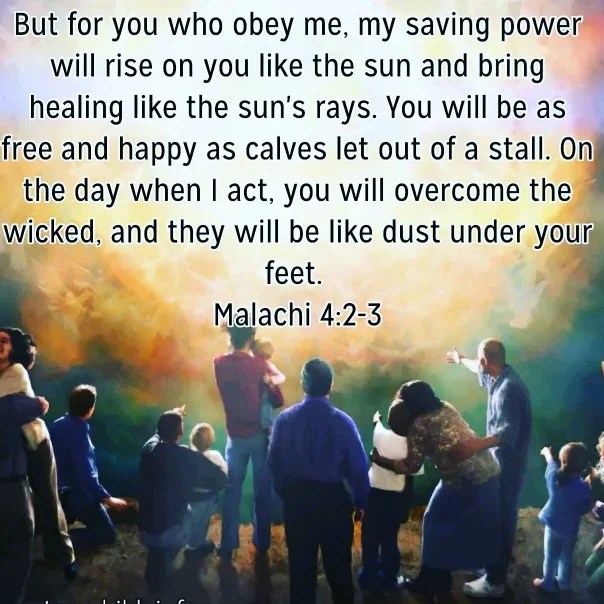 So, the fact remains, who do we choose? (To do nothing is also a choice made.) How will be live our lives here? Who will we follow? Truth or lies? Our answers to these questions we must deal with daily lead to life or death forever. All of creation is eagerly awaiting the return of the Savior, expecting to be delivered from the bondage of sin (Check our Romans 8:18–23). We too should be expecting Him and, while we’re waiting, tell others about Jesus! For the arising of “the Sun of Righteousness” will mean either burning or blessing according to our passage: blessing to those who have trusted Him, burning to those who have rejected Him.