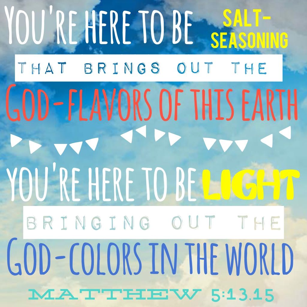 Salt and Light—God-flavors and God-colors—illuminating and seasoning the world in need of His saving grace.