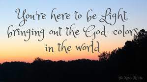 Jesus came to be and give Light, the Light of Truth, to the dark, sinful world. Jesus calls on His followers—all who believe Him and decide and commit to follow Him, to be His Light, too. In fact, He tells us, “This is why we are here”—to reflect His Light with all the God-colors of His character! I would imagine this would include talking and walking with God so that we become more like Jesus who showed us who God is and what He will grow in our lives.