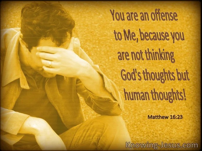 23 But Jesus didn’t swerve. “Peter, get out of my way. Satan, get lost. You have no idea how God works.”