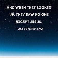 6-8 When the disciples heard it, they fell flat on their faces, scared to death. But Jesus came over and touched them. “Don’t be afraid.” When they opened their eyes and looked around all they saw was Jesus, only Jesus.