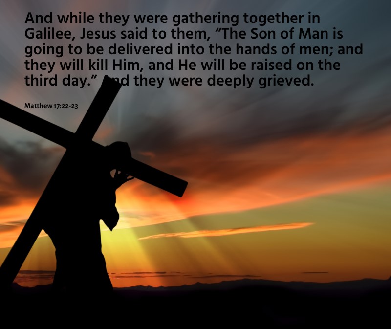22-23 As they were regrouping in Galilee, Jesus told them, “The Son of Man is about to be betrayed to some people who want nothing to do with God. They will murder him—and three days later he will be raised alive.” The disciples felt scared to death.