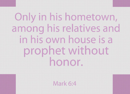 4-6 Jesus told them, “A prophet has little honor in his hometown, among his relatives, on the streets he played in as a child.” Jesus wasn’t able to do much of anything there—he laid hands on a few sick people and healed them, that’s all. He couldn’t get over their stubbornness. He left and made a circuit of the other villages, teaching.