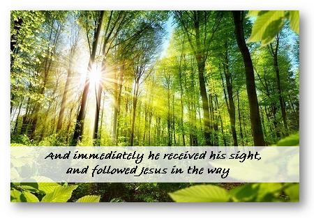 Matthew tells us that Jesus was moved with compassion and touched their eyes (Matthew 20:34), and immediately they were healed. Out of gratitude to Jesus, the men joined the pilgrim band and started toward Jerusalem, following Jesus. This is the last healing miracle recorded in Mark, and it certainly fits into Mark’s “Servant” theme. We see Jesus Christ, God’s Suffering Servant, on His way to the cross, and yet He stops to serve two blind beggars! What love, what mercy, and what grace!