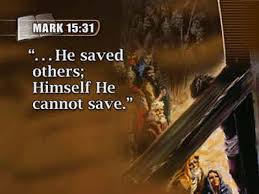 Mark tells us that everyone mocked Jesus as they passed by on their way to the city. That was the “big finish” of the Roman designed punishment. Criminals were nailed to a cross which was then plunked into a hole and hoisted up for all to see as a deterrent for others that think of committing crimes or rebellions against the Roman government. Even the real criminals on crosses on either side of Jesus, began mocking Him!
