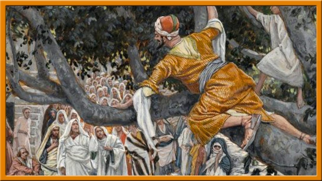 19 1-4 Then Jesus entered and walked through Jericho. There was a man there, his name Zacchaeus, the head tax man and quite rich. He wanted desperately to see Jesus, but the crowd was in his way—he was a short man and couldn’t see over the crowd. So he ran on ahead and climbed up in a sycamore tree so he could see Jesus when he came by.