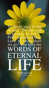 I’m with Peter’s thinking, where else would I go? Who else but God would I follow? There is no one like You, Lord. And besides that, you wouldn’t let me go once I believed. You remain in me, so I will remain in You. There is no other way but to trust in You. You are Life. You are all I need. You are love, mercy, and grace as you patiently work out your salvation in me. All I am I owe to you. All I am I give to you.