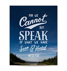 18-20 They called them back and warned them that they were on no account ever again to speak or teach in the name of Jesus. But Peter and John spoke right back, “Whether it’s right in God’s eyes to listen to you rather than to God, you decide. As for us, there’s no question—we can’t keep quiet about what we’ve seen and heard.”