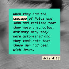 Peter and John have chosen to follow Jesus. They are passionately obedient to God’s Holy Spirit. Their demeanor is obvious. In another translation this passage of Luke tells the reaction of the religious to Peter and John’s testimony in this way; “The members of the council were amazed when they saw the boldness of Peter and John, for they could see that they were ordinary men with no special training in the Scriptures. They also recognized them as men who had been with Jesus.” (verse 13)