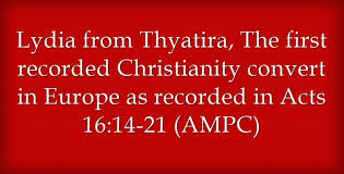 13-14 On the Sabbath, we left the city and went down along the river where we had heard there was to be a prayer meeting. We took our place with the women who had gathered there and talked with them. One woman, Lydia, was from Thyatira and a dealer in expensive textiles, known to be a God-fearing woman. As she listened with intensity to what was being said, the Master gave her a trusting heart—and she believed!