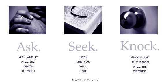 When reading Matthew 7:7-8, most people think that Jesus was saying the same thing three different times: pray, and your prayer will get answered. In other words they read “Ask, seek, knock” as “Pray, pray, and pray again”. But there may be a better way of understanding the words of Jesus. Jesus is not simply telling His disciples to pray, but is giving them instructions on how to see answers to their own prayers.