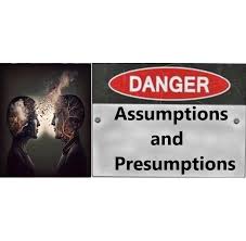 We do it every day. We rely on first looks, first impressions, based on heresy and previous experiences without real proof or listening to facts. We assume and presume. How are the terms interrelated? Let’s define both: