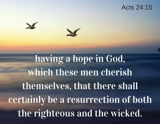 14-15 “But I do freely admit this: In regard to the Way, which they malign as a dead-end street, I serve and worship the very same God served and worshiped by all our ancestors and embrace everything written in all our Scriptures. And I admit to living in hopeful anticipation that God will raise the dead, both the good and the bad. If that’s my crime, my accusers are just as guilty as I am.