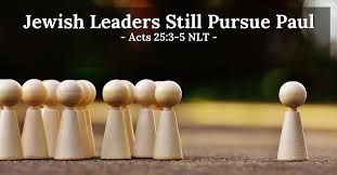 25 1-3 Three days after Festus arrived in Caesarea to take up his duties as governor, he went up to Jerusalem. The high priests and top leaders renewed their vendetta against Paul. They asked Festus if he wouldn’t please do them a favor by sending Paul to Jerusalem to respond to their charges. A lie, of course—they had revived their old plot to set an ambush and kill him along the way.