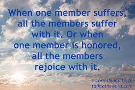 25-26 The way God designed our bodies is a model for understanding our lives together as a church: every part dependent on every other part, the parts we mention and the parts we don’t, the parts we see and the parts we don’t. If one part hurts, every other part is involved in the hurt, and in the healing. If one part flourishes, every other part enters into the exuberance.