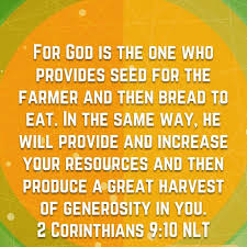 This most generous God who gives seed to the farmer that becomes bread for your meals is more than extravagant with you. He gives you something you can then give away, which grows into full-formed lives, robust in God, wealthy in every way, so that you can be generous in every way, producing with us great praise to God.