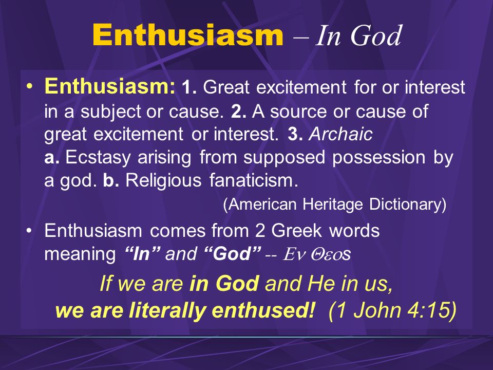 While believers in Jesus must not compete with each other in their service for Christ, we are taught to “stir the pot” of the enthusiastic service to God so to speak. Hebrews 10:23-24 is often used to remind people to go the church but it is more about our growing an infectious enthusiasm for glorifying God by helping each other! “And let us consider how we may spur one another on toward love and good deeds, not giving up meeting together, as some are in the habit of doing, but encouraging one another—and all the more as you see the Day approaching.” Many people serve Jesus by helping others find Jesus weekly in today’s churches. Authentic servants of Jesus enthusiastically work to establish an environment of loving acceptance with caring compassion that is seen, heard, and felt by all who come to worship and learn more about God—all for God who saves and redeems us through His Son, Jesus!