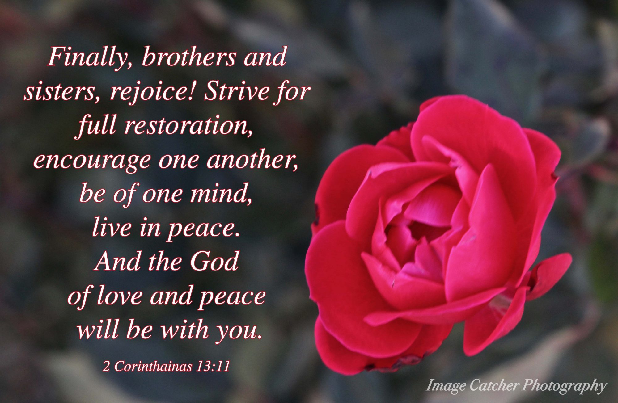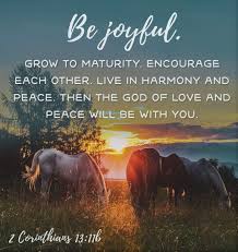 11-13 And that’s about it, friends. Be cheerful. Keep things in good repair. Keep your spirits up. Think in harmony. Be agreeable. Do all that, and the God of love and peace will be with you for sure. Greet one another with a holy embrace. All the brothers and sisters here say hello.
