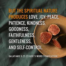 22-23 But what happens when we live God’s way? He brings gifts into our lives, much the same way that fruit appears in an orchard—things like affection for others, exuberance about life, serenity. We develop a willingness to stick with things, a sense of compassion in the heart, and a conviction that a basic holiness permeates things and people. We find ourselves involved in loyal commitments, not needing to force our way in life, able to marshal and direct our energies wisely.