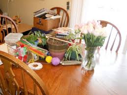 I was also taught to declutter everything that can easily accumulate on our dinner table during the work week. The table becomes a drop zone of papers and backpacks! The clutter piles up quickly with bills that must be paid, ads telling us what we must buy, notices of things we must do, along with kids’ school papers to sign and the good intentioned coupons we might use. It can become so cluttered as a makeshift filing system that there is no more room to eat. So, instead of sitting down together for a meal; we grab a snack and sit on the couch. If the table becomes too cluttered, the centerpiece becomes less noticeable. The people become more detached from each other. The trash on the table blocks the beauty of the centerpiece and discourages us to eat there.
