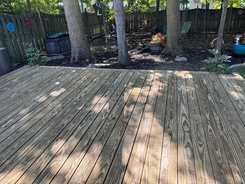 We just spent the last two days power washing our deck. Because we live in the woods the deck was covered with a buildup of dark sap, juices of fallen half eaten hickory nuts by the squirrels, along with other residue from being under the shade of these giant trees. It’s beautiful to be living under the trees’ canopy of green until the deck grows dingy and dangerously slick. The only way to remove the gunk is to power wash it away. It is a slow, tedious process to bring the deck back to life, but it is worth it to see the beautiful wood grain appear once more. Power washing is the only way! It now looks as if it were installed only yesterday!