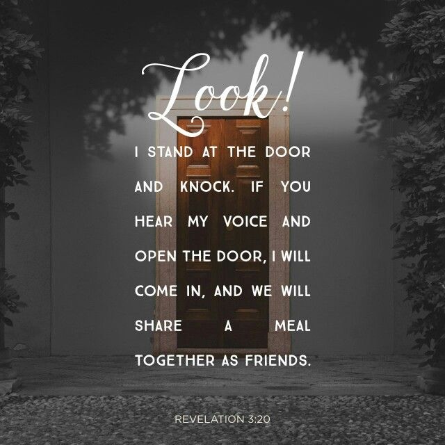 When you see Me standing outside, knocking on the closed doors of your hearts, minds, and souls; Open the door and let Me in! –Jesus I want to be with you, eat and drink with you, commune with you, and tell you of my love for you.