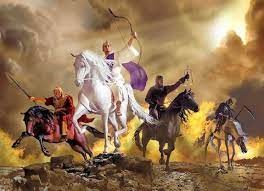 7-8 When he ripped off the fourth seal, I heard the fourth Animal cry, “Come out!” I looked. A colorless horse, sickly pale. Its rider was Death, and Hell was close on its heels. They were given power to destroy a fourth of the earth by war, famine, disease, and wild beasts.