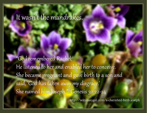 22 Then God remembered Rachel; he listened to her and enabled her to conceive. 23 She became pregnant and gave birth to a son and said, “God has taken away my disgrace.” 24 She named him Joseph, and said, “May the Lord add to me another son.”