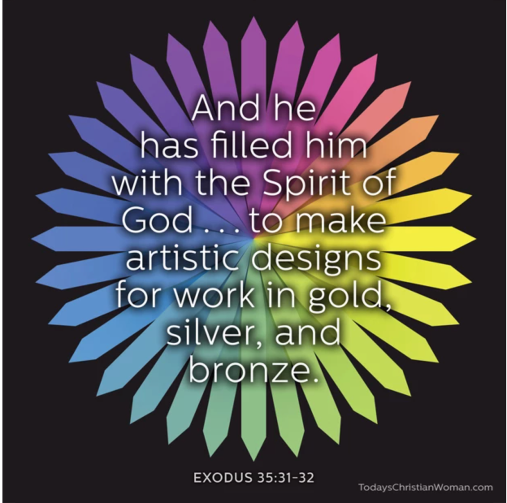30 Then Moses said to the Israelites, “See, the Lord has chosen Bezalel son of Uri, the son of Hur, of the tribe of Judah, 31 and he has filled him with the Spirit of God, with wisdom, with understanding, with knowledge and with all kinds of skills— 32 to make artistic designs for work in gold, silver and bronze, 33 to cut and set stones, to work in wood and to engage in all kinds of artistic crafts. 34 And he has given both him and Oholiab son of Ahisamak, of the tribe of Dan, the ability to teach others. 35 He has filled them with skill to do all kinds of work as engravers, designers, embroiderers in blue, purple and scarlet yarn and fine linen, and weavers—all of them skilled workers and designers.