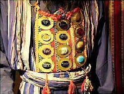 22 They made the robe of the ephod entirely of blue cloth—the work of a weaver— 23 with an opening in the center of the robe like the opening of a collar, and a band around this opening, so that it would not tear. 24 They made pomegranates of blue, purple and scarlet yarn and finely twisted linen around the hem of the robe. 25 And they made bells of pure gold and attached them around the hem between the pomegranates. 26 The bells and pomegranates alternated around the hem of the robe to be worn for ministering, as the Lord commanded Moses.