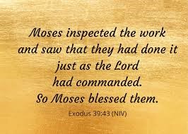 42 The Israelites had done all the work just as the Lord had commanded Moses. 43 Moses inspected the work and saw that they had done it just as the Lord had commanded. So Moses blessed them.