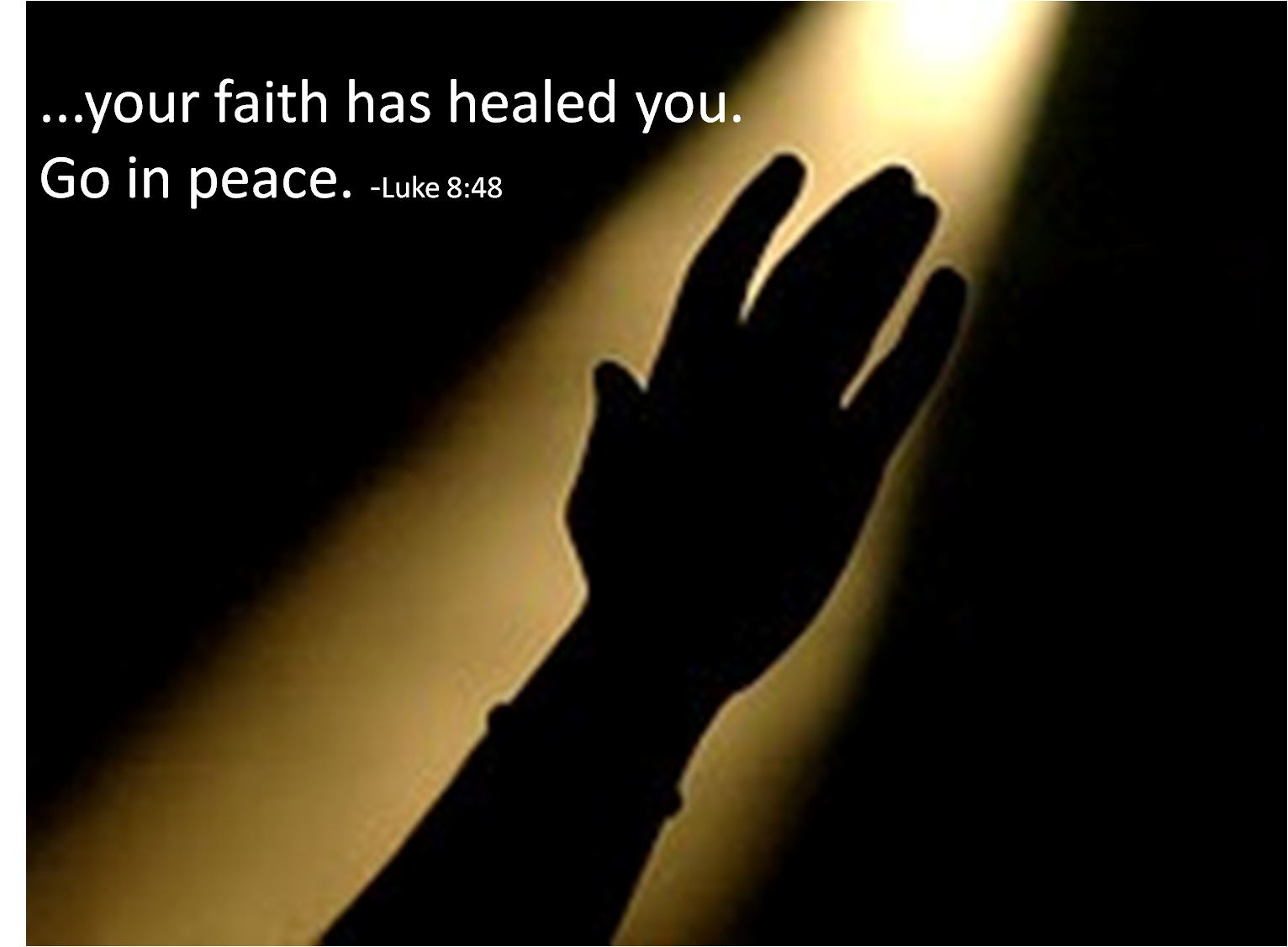 Then the woman, seeing that she could not go unnoticed, came trembling and fell at his feet. In the presence of all the people, she told why she had touched him and how she had been instantly healed. 48 Then he said to her, “Daughter, your faith has healed you. Go in peace.” Luke 8:43-47