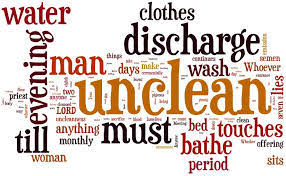 God tells Moses detailed ways to sustain the cleanliness of the Israelites’ households with awareness of how to deal with bodily fluids, both normal and abnormal. All secretions must be cleansed, along with everything the fluids touch. Then they must be declared clean by the priest who will provide a sacrifice and burnt offering from what they bring to him so that they can be atoned and cleansed.