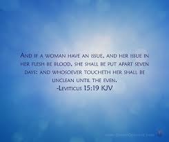 25 “‘When a woman has a discharge of blood for many days at a time other than her monthly period or has a discharge that continues beyond her period, she will be unclean as long as she has the discharge, just as in the days of her period. 26 Any bed she lies on while her discharge continues will be unclean, as is her bed during her monthly period, and anything she sits on will be unclean, as during her period. 27 Anyone who touches them will be unclean; they must wash their clothes and bathe with water, and they will be unclean till evening.