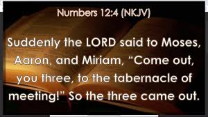 4 At once the Lord said to Moses, Aaron and Miriam, “Come out to the tent of meeting, all three of you.” So the three of them went out. 5 Then the Lord came down in a pillar of cloud; he stood at the entrance to the tent and summoned Aaron and Miriam. When the two of them stepped forward, 6 he said, “Listen to my words: