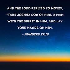 18 So the Lord said to Moses, “Take Joshua son of Nun, a man in whom is the spirit of leadership, and lay your hand on him. 19 Have him stand before Eleazar the priest and the entire assembly and commission him in their presence. 20 Give him some of your authority so the whole Israelite community will obey him. 21 He is to stand before Eleazar the priest, who will obtain decisions for him by inquiring of the Urim before the Lord. At his command he and the entire community of the Israelites will go out, and at his command they will come in.”