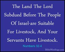 The Reubenites and Gadites, who had very large herds and flocks, saw that the lands of Jazer and Gilead were suitable for livestock. 2 So they came to Moses and Eleazar the priest and to the leaders of the community, and said, 3 “Ataroth, Dibon, Jazer, Nimrah, Heshbon, Elealeh, Sebam, Nebo and Beon— 4 the land the Lord subdued before the people of Israel—are suitable for livestock, and your servants have livestock. 5 If we have found favor in your eyes,” they said, “let this land be given to your servants as our possession. Do not make us cross the Jordan.”