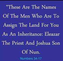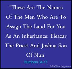 16 The Lord said to Moses, 17 “These are the names of the men who are to assign the land for you as an inheritance: Eleazar the priest and Joshua son of Nun. 18 And appoint one leader from each tribe to help assign the land. 19 These are their names: