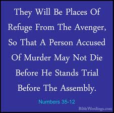 “Thou shalt not murder” was one of the Ten Commandments given by God to His People. So, when a murder occurs whether intentionally or unintentionally, it breaks the heart of God for disobedience of the commandment. Because of God’s love for His People, He wants no harm to be done to the innocent. God designed His plan to resolve the issue. The one accused flees to a city of refuge. A trial is ordered. Elders will be the judges who decide the outcome of the accused. Witnesses are called to testify. No ransom can be made to “buy their way out” of this trouble.