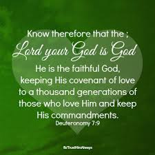 7 The Lord did not set his affection on you and choose you because you were more numerous than other peoples, for you were the fewest of all peoples. 8 But it was because the Lord loved you and kept the oath he swore to your ancestors that he brought you out with a mighty hand and redeemed you from the land of slavery, from the power of Pharaoh king of Egypt. 9 Know therefore that the Lord your God is God; he is the faithful God, keeping his covenant of love to a thousand generations of those who love him and keep his commandments. 10 But