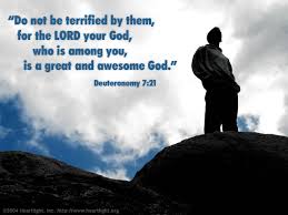 17 You may say to yourselves, “These nations are stronger than we are. How can we drive them out?” 18 But do not be afraid of them; remember well what the Lord your God did to Pharaoh and to all Egypt. 19 You saw with your own eyes the great trials, the signs and wonders, the mighty hand and outstretched arm, with which the Lord your God brought you out. The Lord your God will do the same to all the peoples you now fear. 20 Moreover, the Lord your God will send the hornet among them until even the survivors who hide from you have perished. 21 Do not be terrified by them, for the Lord your God, who is among you, is a great and awesome God. 22 The Lord your God will drive out those nations before you, little by little. You will not be allowed to eliminate them all at once, or the wild animals will multiply around you. 23 But the Lord your God will deliver them over to you, throwing them into great confusion until they are destroyed. 24 He will give their kings into your hand, and you will wipe out their names from under heaven. No one will be able to stand up against you; you will destroy them. 25 The images of their gods you are to burn in the fire. Do not covet the silver and gold on them, and do not take it for yourselves, or you will be ensnared by it, for it is detestable to the Lord your God. 26 Do not bring a detestable thing into your house or you, like it, will be set apart for destruction. Regard it as vile and utterly detest it, for it is set apart for destruction.