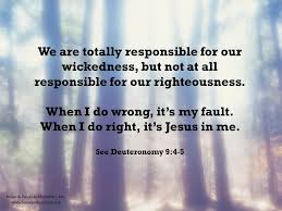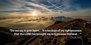 4 After the Lord your God has driven them out before you, do not say to yourself, “The Lord has brought me here to take possession of this land because of my righteousness.” No, it is on account of the wickedness of these nations that the Lord is going to drive them out before you. 5 It is not because of your righteousness or your integrity that you are going in to take possession of their land; but on account of the wickedness of these nations, the Lord your God will drive them out before you, to accomplish what he swore to your fathers, to Abraham, Isaac and Jacob. 6 Understand, then, that it is not because of your righteousness that the Lord your God is giving you this good land to possess, for you are a stiff-necked people.