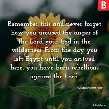 7 Remember this and never forget how you aroused the anger of the Lord your God in the wilderness. From the day you left Egypt until you arrived here, you have been rebellious against the Lord. 8 At Horeb you aroused the Lord’s wrath so that he was angry enough to destroy you. 9 When I went up on the mountain to receive the tablets of stone, the tablets of the covenant that the Lord had made with you, I stayed on the mountain forty days and forty nights; I ate no bread and drank no water. 10 The Lord gave me two stone tablets inscribed by the finger of God. On them were all the commandments the Lord proclaimed to you on the mountain out of the fire, on the day of the assembly.