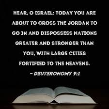 Hear, Israel: You are now about to cross the Jordan to go in and dispossess nations greater and stronger than you, with large cities that have walls up to the sky. 2 The people are strong and tall—Anakites! You know about them and have heard it said: “Who can stand up against the Anakites?” 3 But be assured today that the Lord your God is the one who goes across ahead of you like a devouring fire. He will destroy them; he will subdue them before you. And you will drive them out and annihilate them quickly, as the Lord has promised you.
