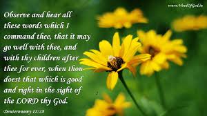 26 But take your consecrated things and whatever you have vowed to give, and go to the place the Lord will choose. 27 Present your burnt offerings on the altar of the Lord your God, both the meat and the blood. The blood of your sacrifices must be poured beside the altar of the Lord your God, but you may eat the meat. 28 Be careful to obey all these regulations I am giving you, so that it may always go well with you and your children after you, because you will be doing what is good and right in the eyes of the Lord your God.