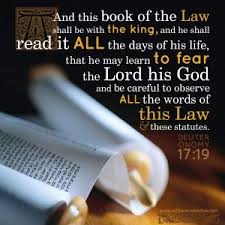18 When he takes the throne of his kingdom, he is to write for himself on a scroll a copy of this law, taken from that of the Levitical priests. 19 It is to be with him, and he is to read it all the days of his life so that he may learn to revere the Lord his God and follow carefully all the words of this law and these decrees 20 and not consider himself better than his fellow Israelites and turn from the law to the right or to the left. Then he and his descendants will reign a long time over his kingdom in Israel.