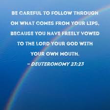 21 If you make a vow to the Lord your God, do not be slow to pay it, for the Lord your God will certainly demand it of you and you will be guilty of sin. 22 But if you refrain from making a vow, you will not be guilty. 23 Whatever your lips utter you must be sure to do, because you made your vow freely to the Lord your God with your own mouth.