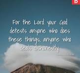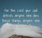 13 Do not have two differing weights in your bag—one heavy, one light. 14 Do not have two differing measures in your house—one large, one small. 15 You must have accurate and honest weights and measures, so that you may live long in the land the Lord your God is giving you. 16 For the Lord your God detests anyone who does these things, anyone who deals dishonestly.