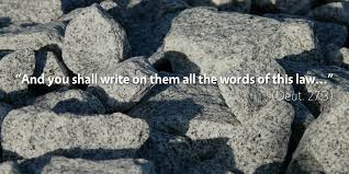 Moses and the elders of Israel commanded the people: “Keep all these commands that I give you today. 2 When you have crossed the Jordan into the land the Lord your God is giving you, set up some large stones and coat them with plaster. 3 Write on them all the words of this law when you have crossed over to enter the land the Lord your God is giving you, a land flowing with milk and honey, just as the Lord, the God of your ancestors, promised you. 4 And when you have crossed the Jordan, set up these stones on Mount Ebal, as I command you today, and coat them with plaster. 5 Build there an altar to the Lord your God, an altar of stones. Do not use any iron tool on them. 6 Build the altar of the Lord your God with fieldstones and offer burnt offerings on it to the Lord your God. 7 Sacrifice fellowship offerings there, eating them and rejoicing in the presence of the Lord your God. 8 And you shall write very clearly all the words of this law on these stones you have set up.”